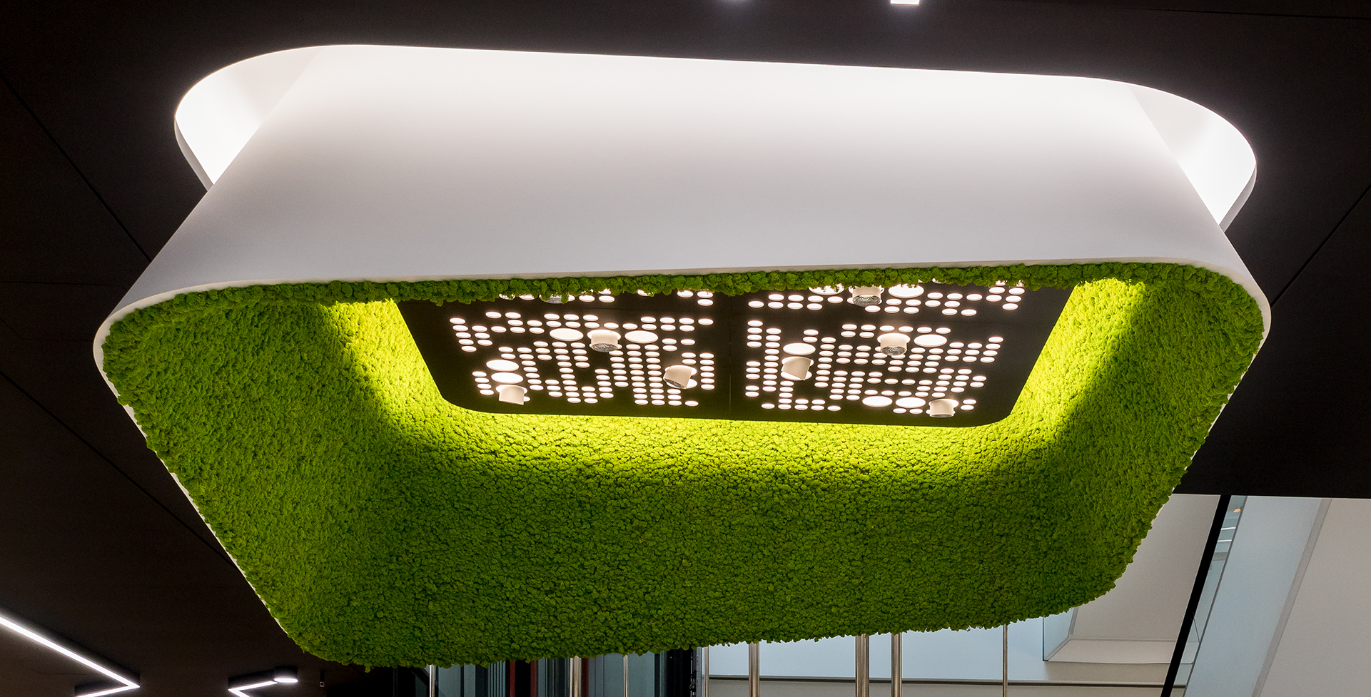 Lichtdecken- und Wände akzentuieren den Raum mittels Kombination aus Funktion und Ästhetik.