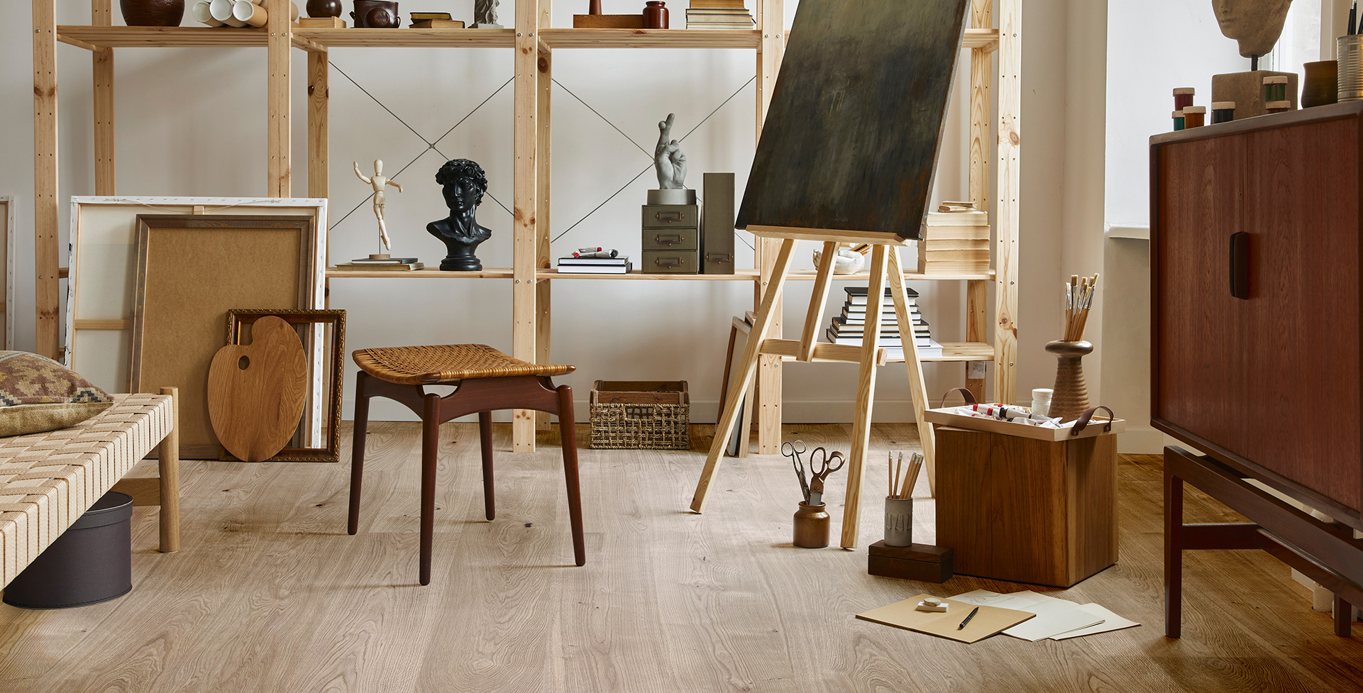 Natürliche Holzoberflächen im Raum bereichern Raumklima und Innenarchitektur gleichermaßen.