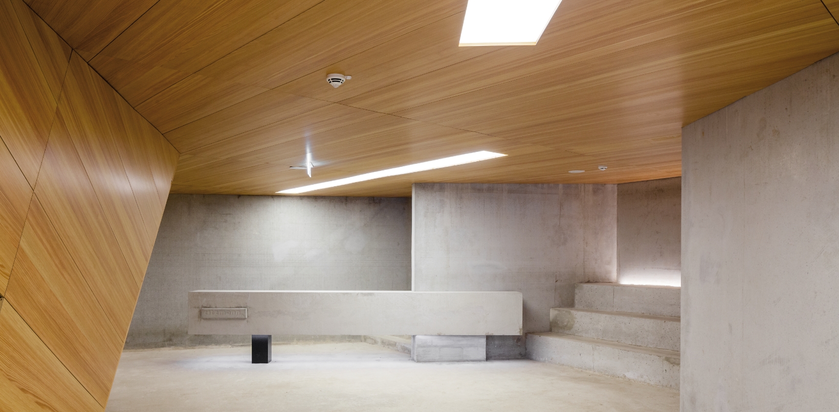 Weil keine noch so gute digitale Visualisierung die originale Holzoberfläche ersetzen kann, stellen wir dem Architekten auch eine großflächige Bemusterung des gefügten Furnierdecks zur Verfügung. muto‘ stellt sicher, dass jedes beauftragte Gewerk eine hochwertige Holzoberfläche mit verteilten natürlichen Holzmerkmalen, wie Ästen, Splint oder Noppen erhält, so dass am Ende ein harmonisches Gesamtbild entsteht. Handwerk von der Vision bis zur Einweihung.